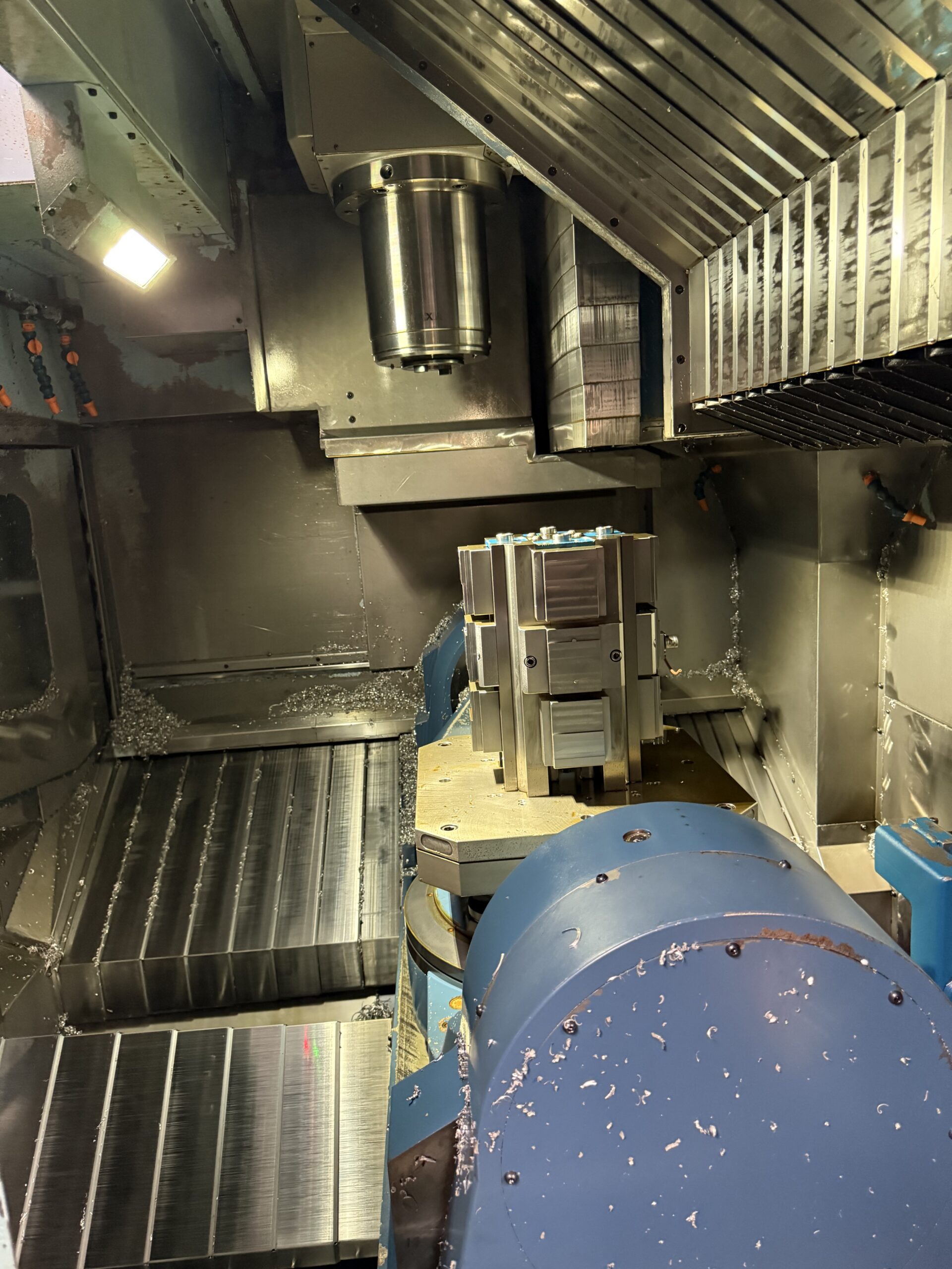 - Rapid Traverse Rates: ~50 m/min on X/Y/Z and ~25–50 min-¹ on A/C rotary axes