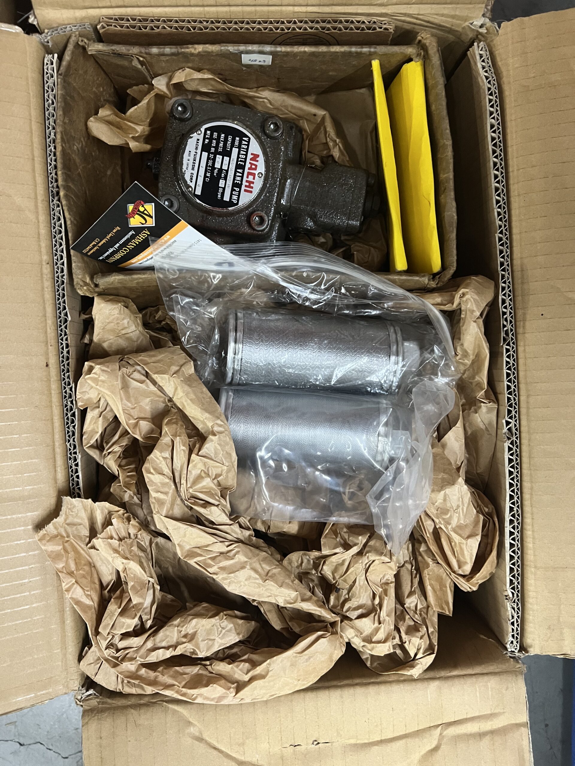 Hydraulic Pump, Nachi Variable Vane VDS-0B-1A3-10 and Motor, Nachi Uni Motor with 2 NEW 10-1-100 Filters