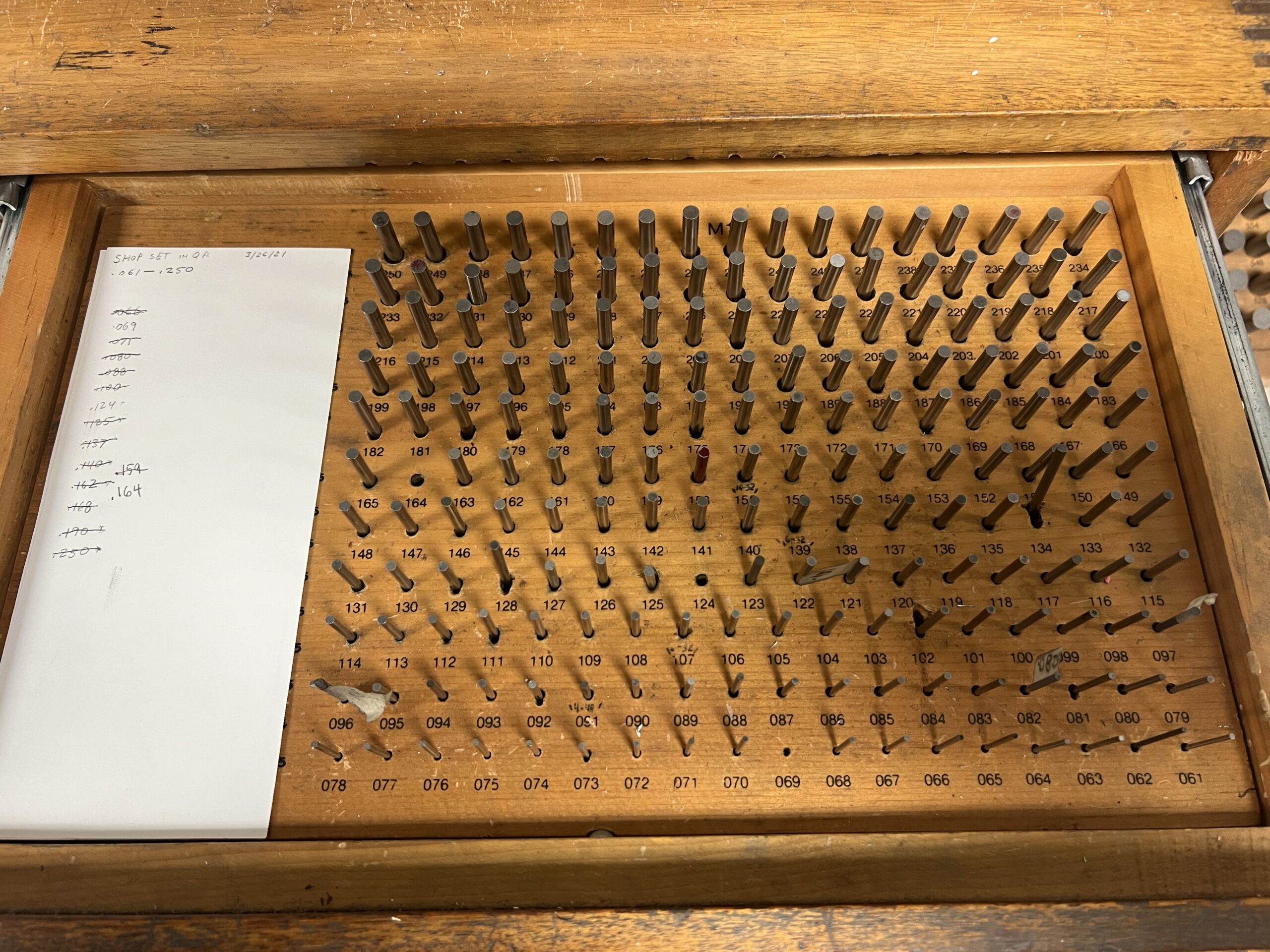.011-.5005 Gage Pin 4-Drawer Set, Meyers M1-M25, Minus, (.001 and .0005 pins) Incomplete