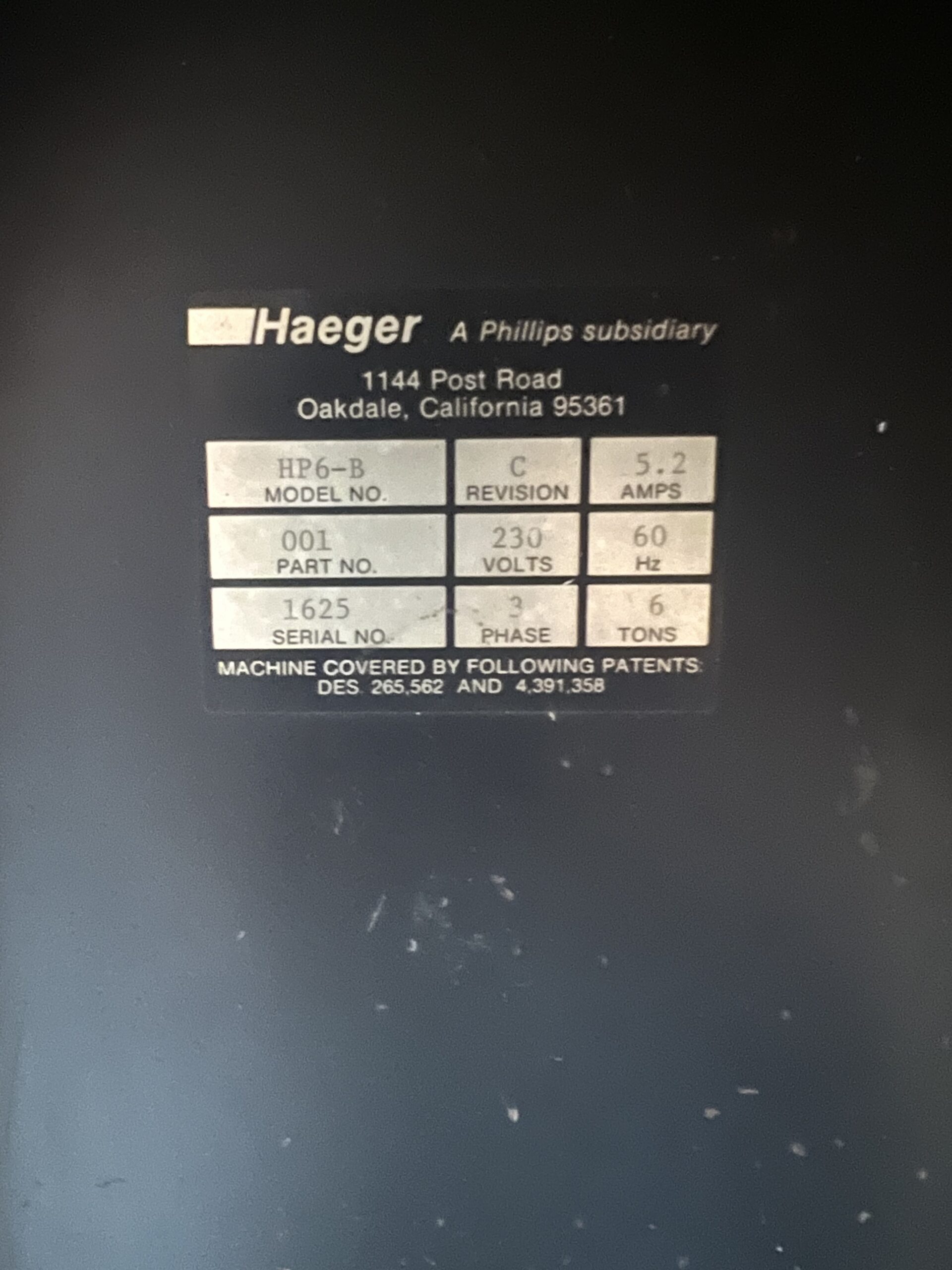 Haeger Insert Punch Mdl.HP6-B S/N:1625 6 Ton