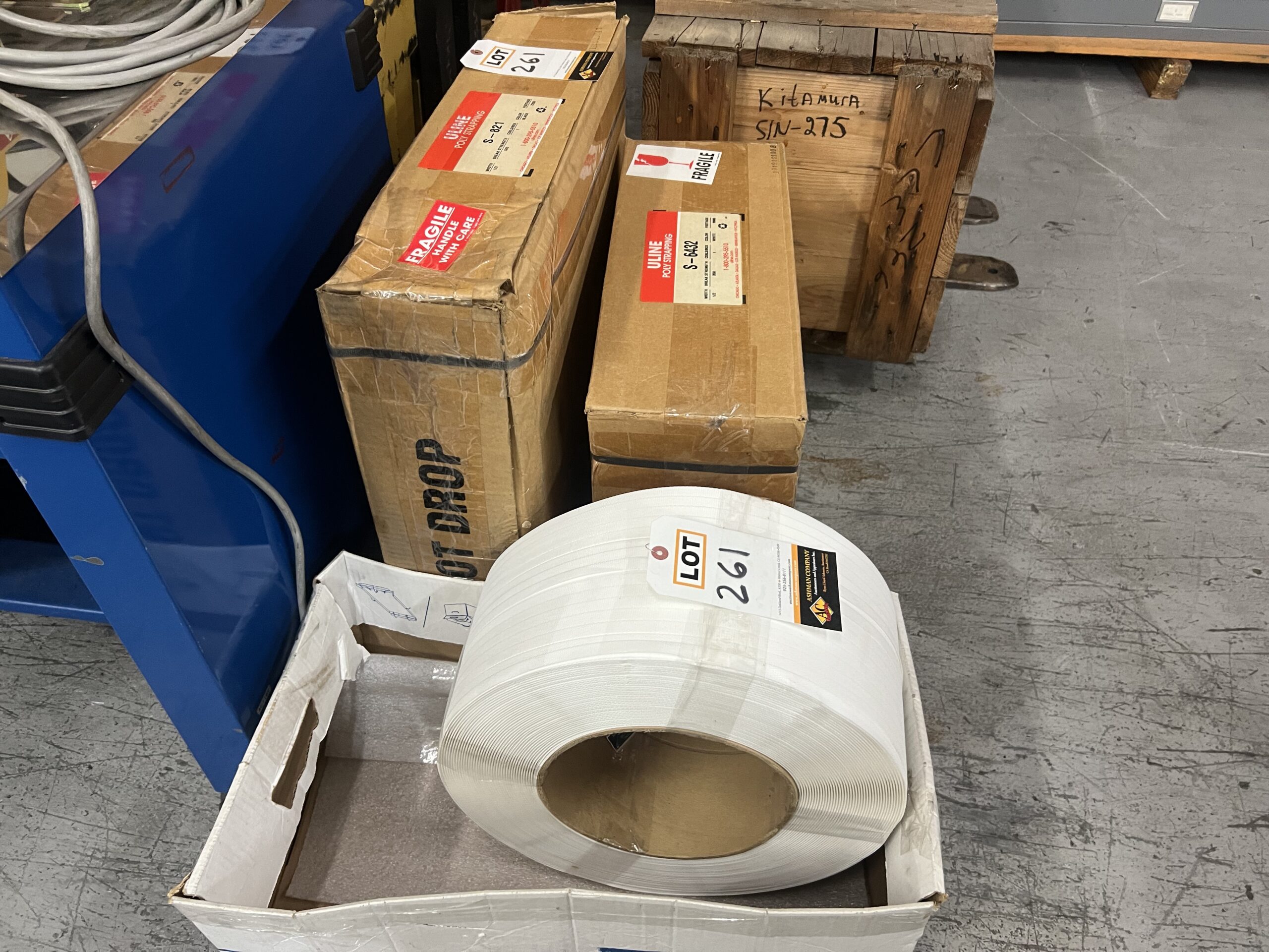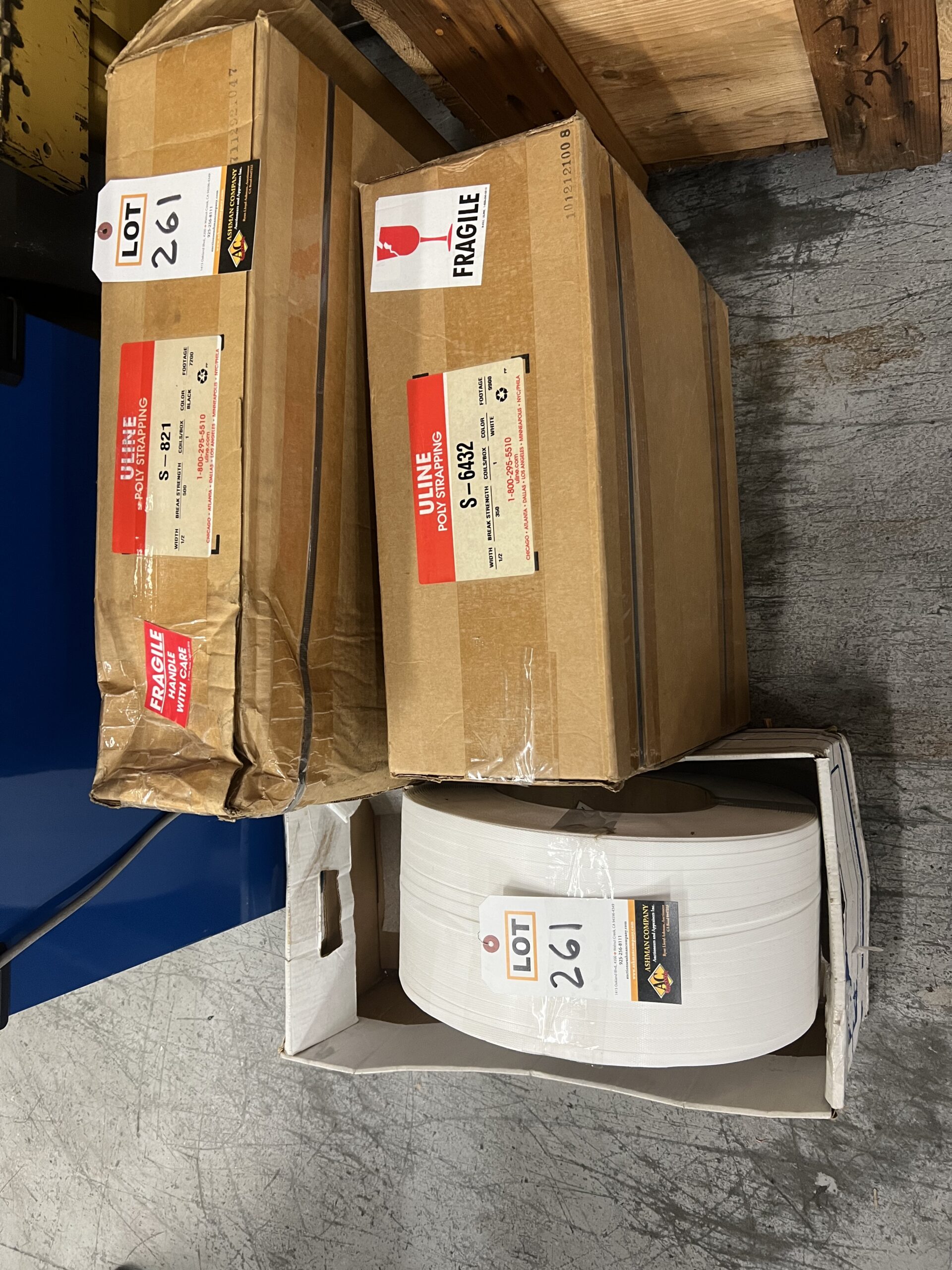 (3) 1/2″ Poly Strapping Rolls, New/Sealed Box and one Open Box U-Line S-6432 White, plus Open Box S-821 Black